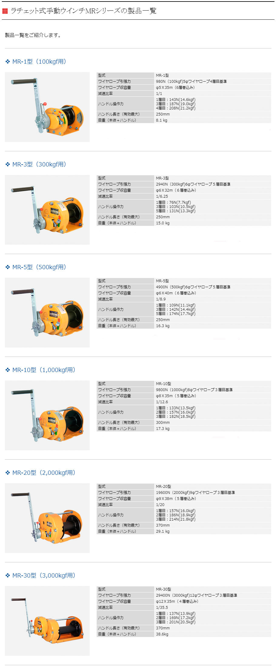 MAXPULL手動絞盤MR-3型(300kgf用)