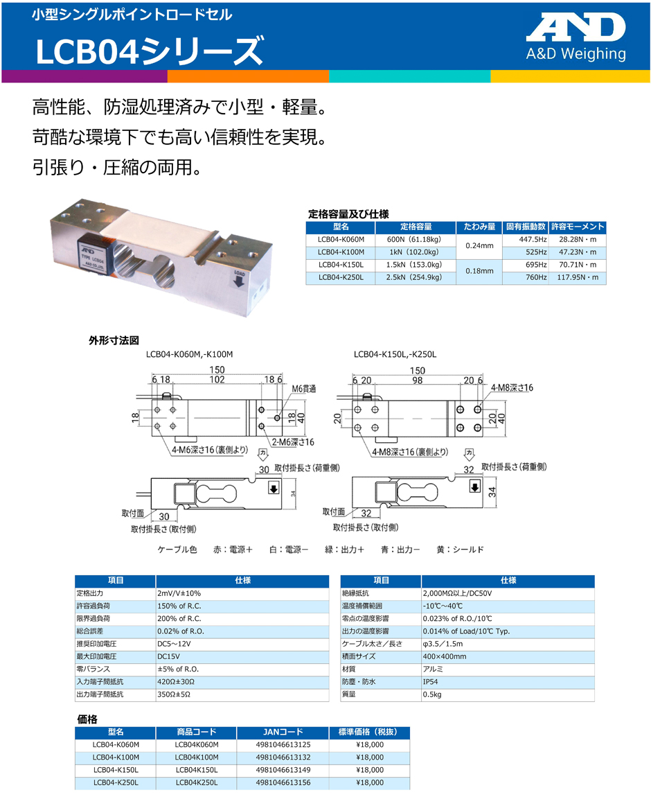 AND(A&D)稱重傳感器LCB04-K150L