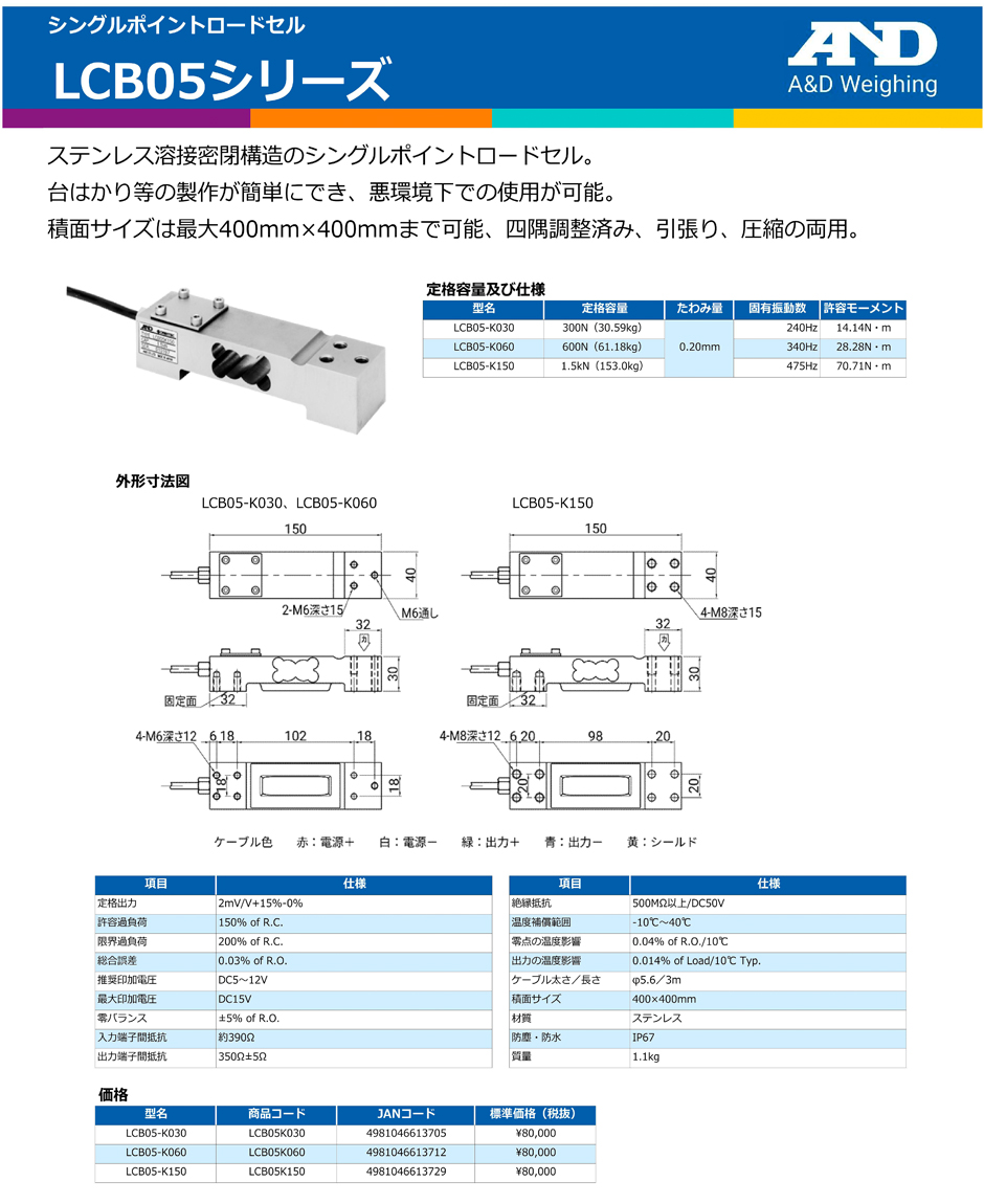 AND(A&D)稱重傳感器LCB05-K060