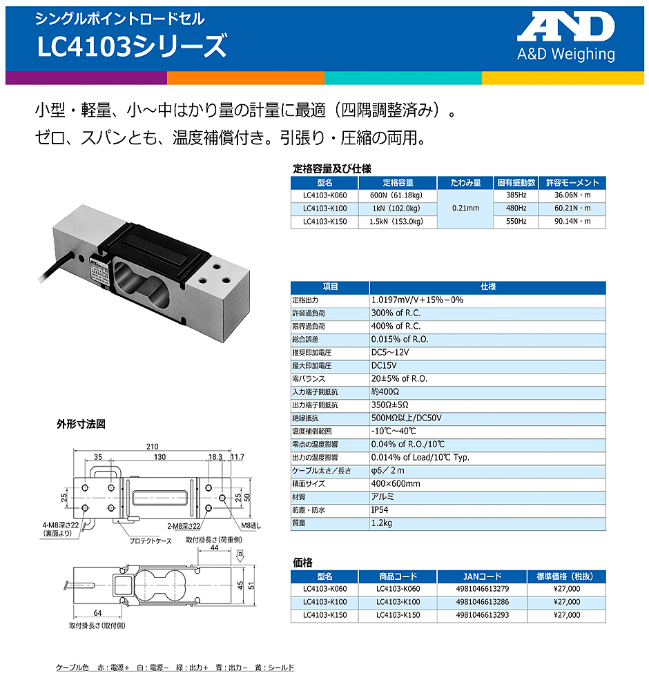AND(A&D)稱重傳感器LC4103-K150
