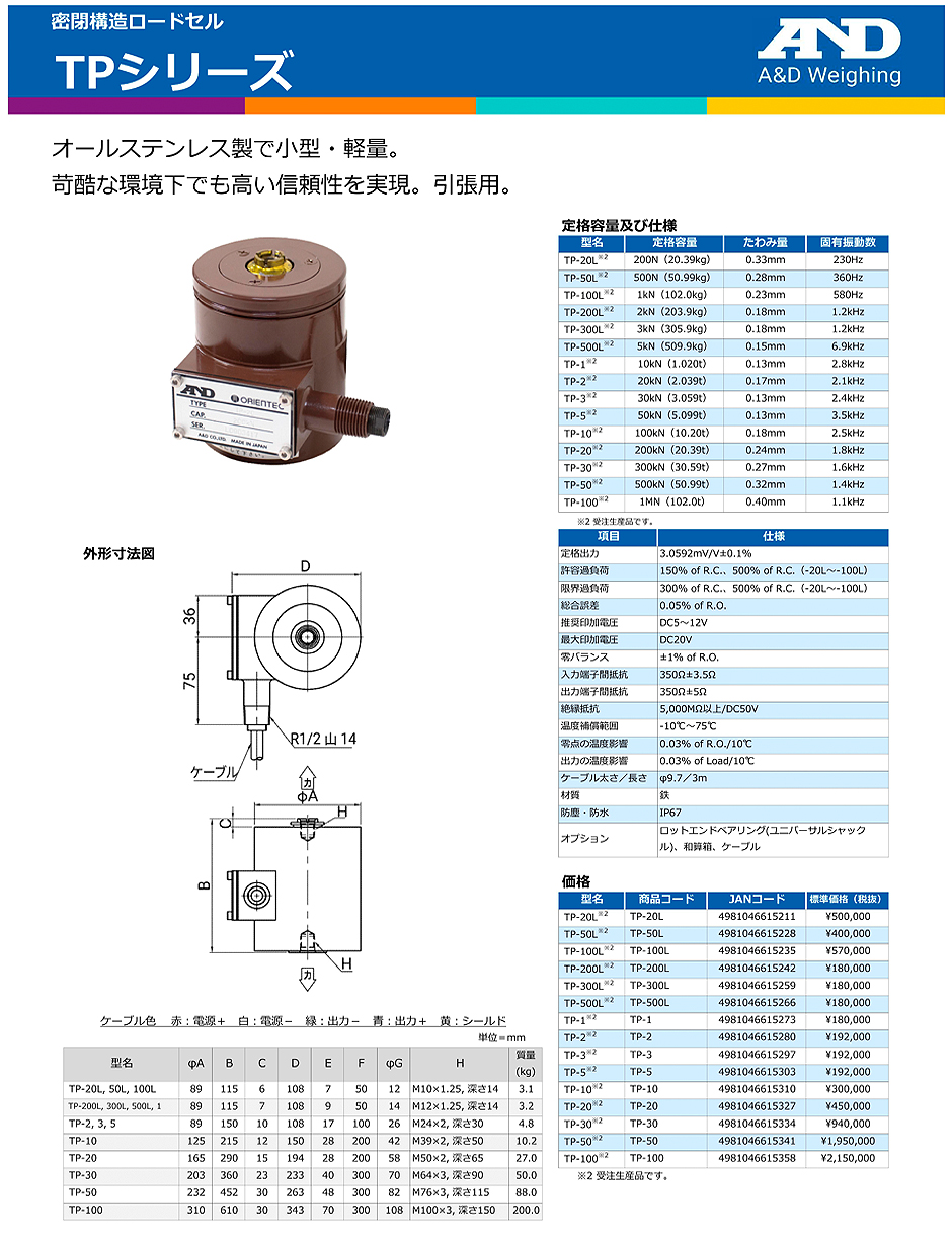 AND(A&D)負(fù)載傳感器TP-1