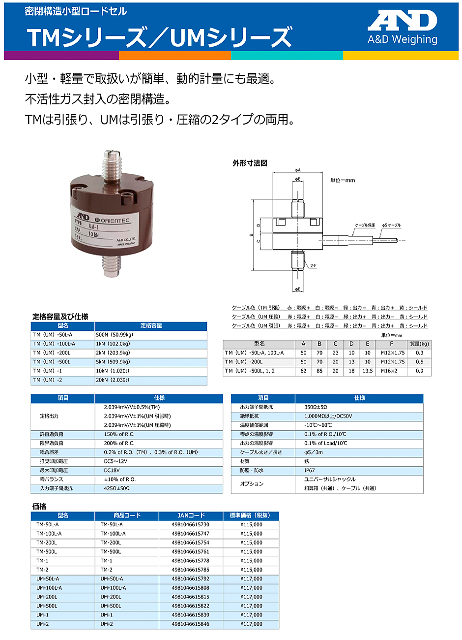 AND(A&D)負載傳感器TM-200L