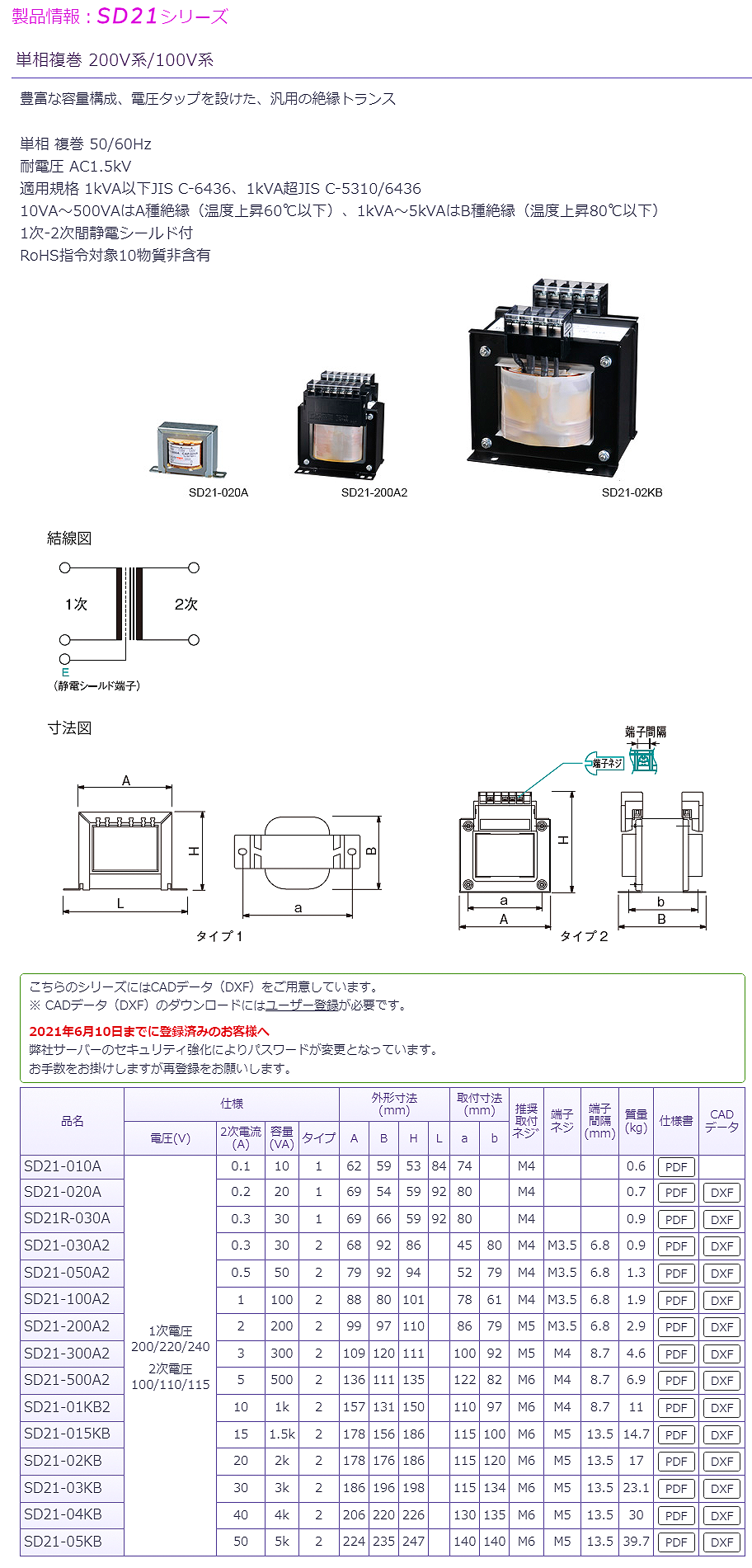 豐澄200V/100V變壓器SD21-02KB