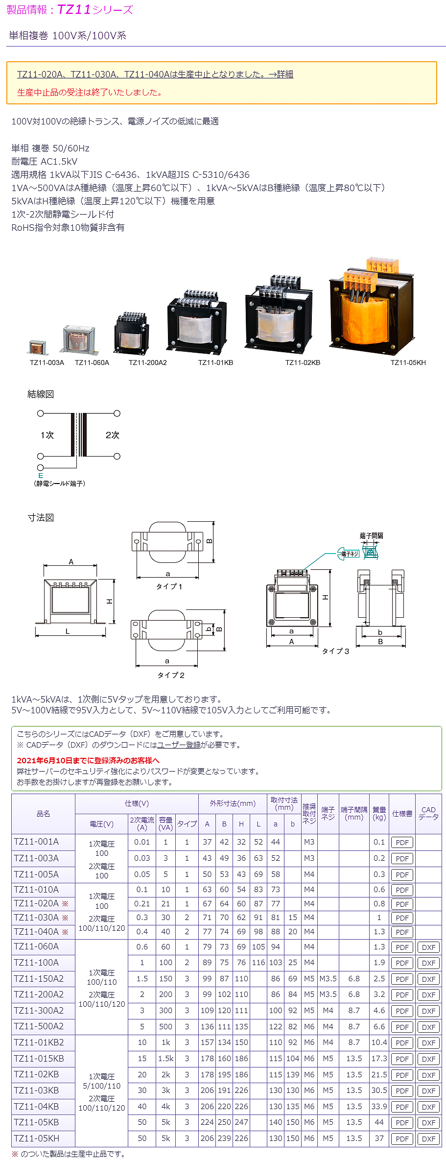 豐澄單相100V/100V變壓器TZ11-02KB