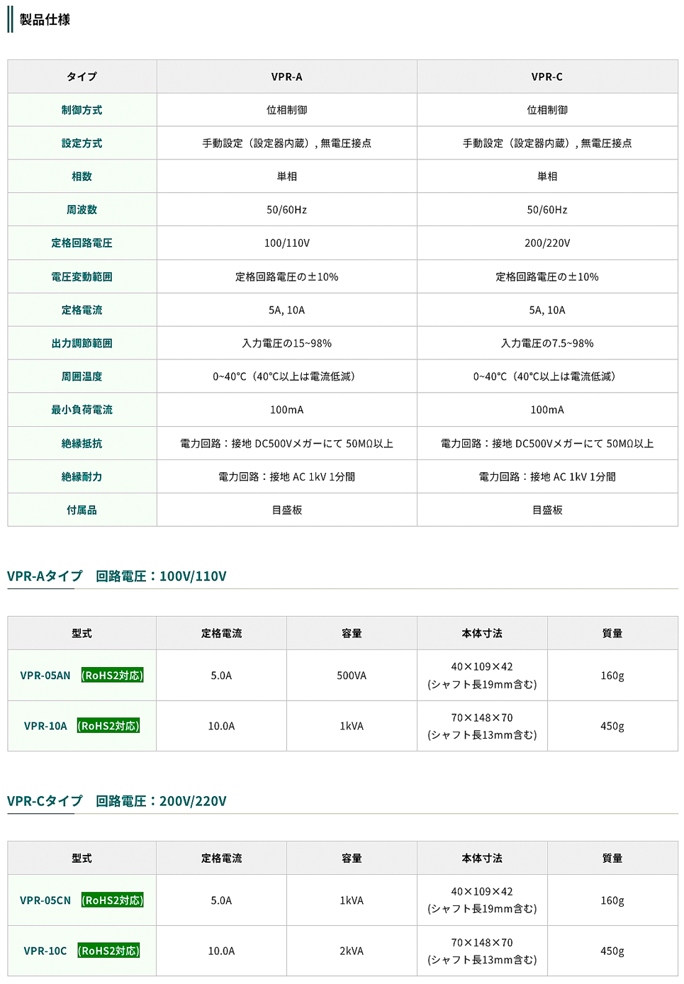 東京理工舍電力調(diào)整器VPR-05CN