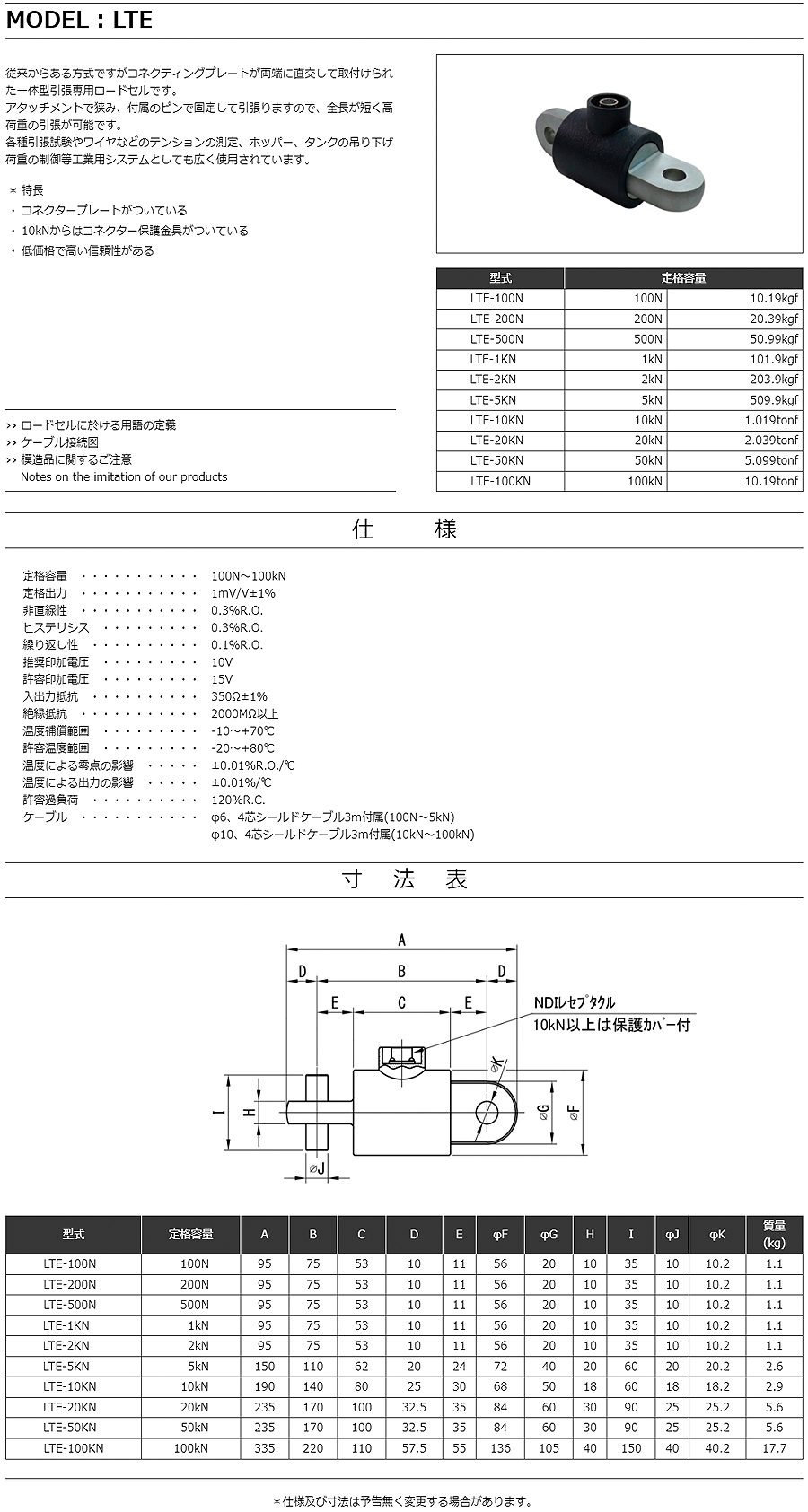 特殊測器拉伸用載荷傳感器LTE-100KN